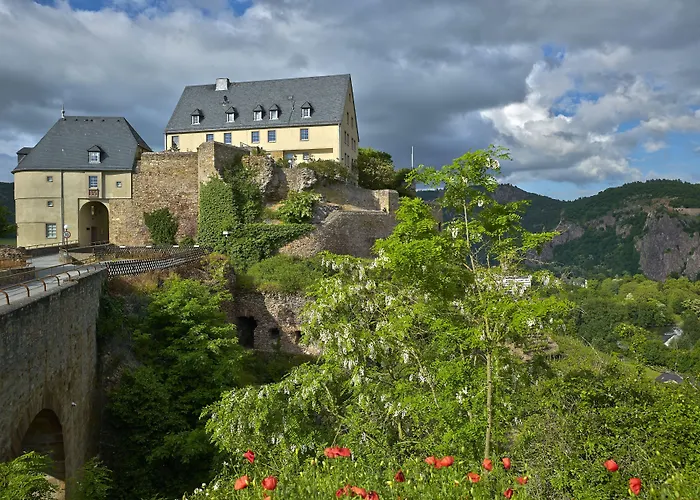 Located approximately a 10-minute drive from the Oranien Park, the 3-star Ebernburg Hotel Bad Kreuznach offers Wi-Fi in public areas and a car park. There is a train station near this Bad Kreuznach hotel, and guests can easily reach Rheingrafenstein Rock which is only 200 metres away.